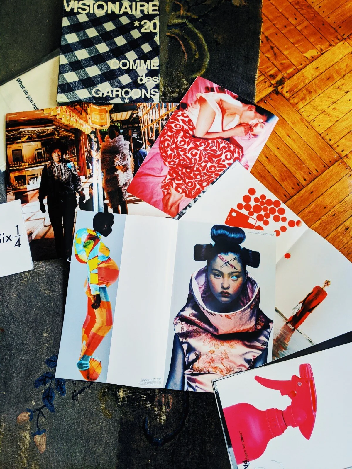 From 1988 to 1991, CDG published a magazine for each new collection called Six which stands for the “sixth sense.” They were oversized loose pages of gorgeous photographs by photographers such as Peter Lindbergh, Juergen Teller, André Kertész, Saul Leiter, to name a few, and art directed by Tsuguya Inoue. CDG books are super rare now, and harder and harder to come by. It takes a lot of time researching online and on eBay, as well as visiting used book stores, to score these treasures.