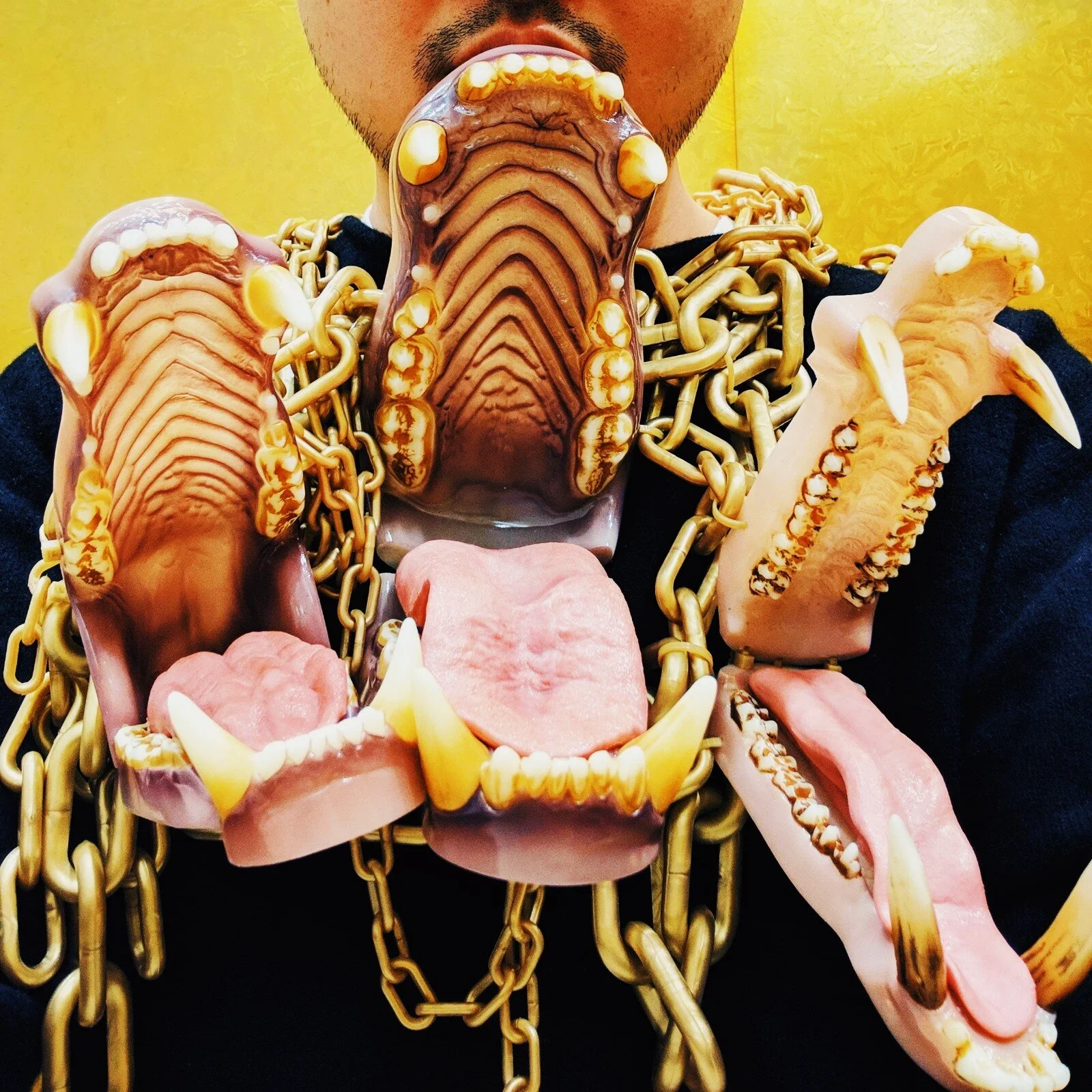 This gold-chain necklace with plastic mouthpieces might be the most insane thing I had ever collected. It was part of the Spring/Summer 2019 collection. There are 3 small mouths and 1 large mouth, all of different animals; I am pretty sure it’s of a tiger, a bear, a dog, and you could wear it either way. When I first saw it at the Comme des Garçons store, I thought it was so crazy and powerful, almost like an amulet or a talisman. I don’t think I’d ever wear it outside, because it is really intimidating, mostly for me (LOL), but again that is definitely a very CDG effect, pushing you out of your comfort zone, as well as everyone around you. For now, it is sitting inside this glass cabinet like a good pet.