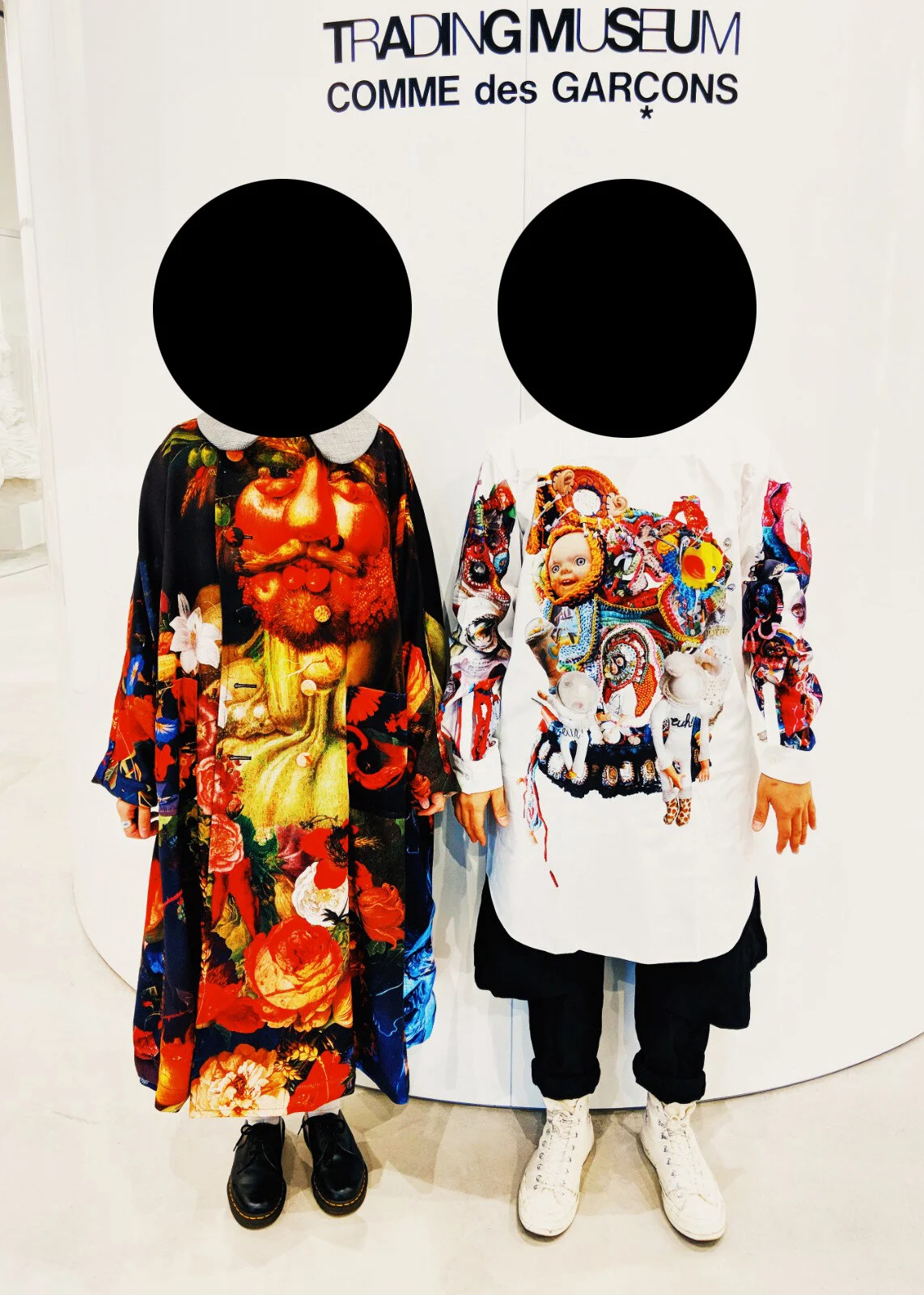 These are two beautiful pieces I was very lucky to own. The white vinyl vest from Fall/Winter 2015 featuring the photograph “Five Hands” by photographer Roger Ballen is just so beautiful. I found it at Tokio 7 in East Village, one of the very few places in New York where you can find vintage CDG. The shirt with the doll collage graphics is a collaboration with textile artist Mona Luison for Spring/Summer 2018. I bought it at the Trading Museum, a concept store by Comme des Garçons to showcase their previous collections, mostly collectible items, as well as special collaborations with other designers and brands. The concept is pretty similar to Dover Street Market, but a lot tighter and more unique in terms of curation and selection, basically a museum where everything is housed in antique display vitrines. I asked the salesperson who was wearing a stunning coat from the same season to take a picture with me; she was just so kawaii!!! If you are in Tokyo, you definitely have to check it out!