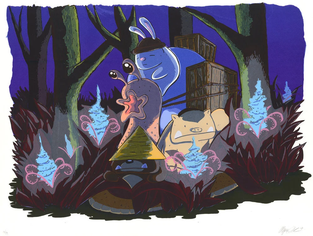 I got into printmaking in college. Originally I thought I would be a painter, but found out I really wasn’t too great at it. I started doing screen printing because I was inspired by Takashi Murakami’s Superflat movement. Screen printing worked perfectly with my illustration work, and from there, I started to branch out and learn other printing techniques. As I got better, I started taking on freelance printing work.